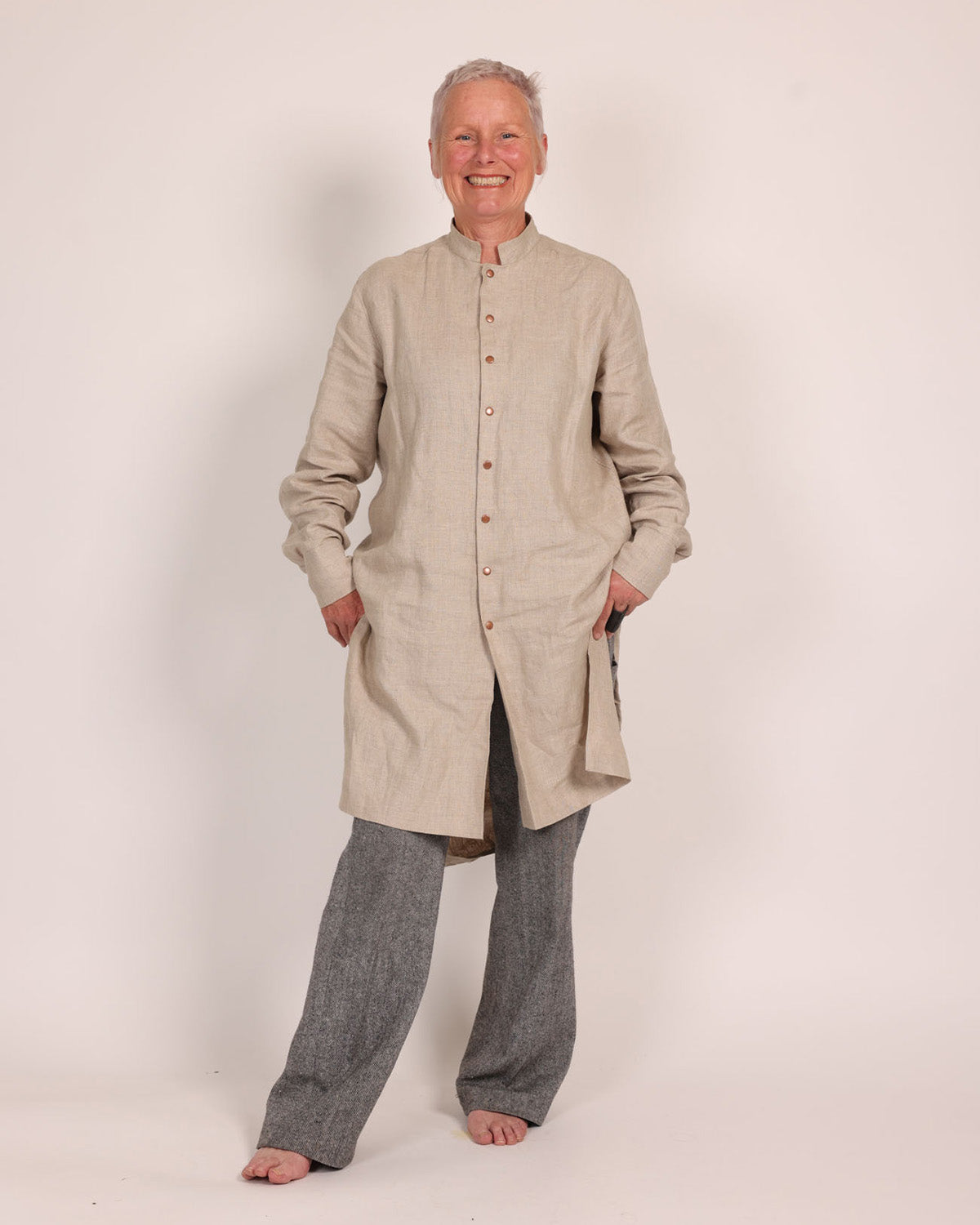 Claire’s designs feature in the ready-to-wear collection, and she is thrilled to have her love of sustainable fabrics such as wool, tweed and hemp being realised as fashion garments. The ethics of sustainable fashion have been on Claire’s mind for a long time, and her innovative ‘one-to-many’ model is a new way to democratise it.